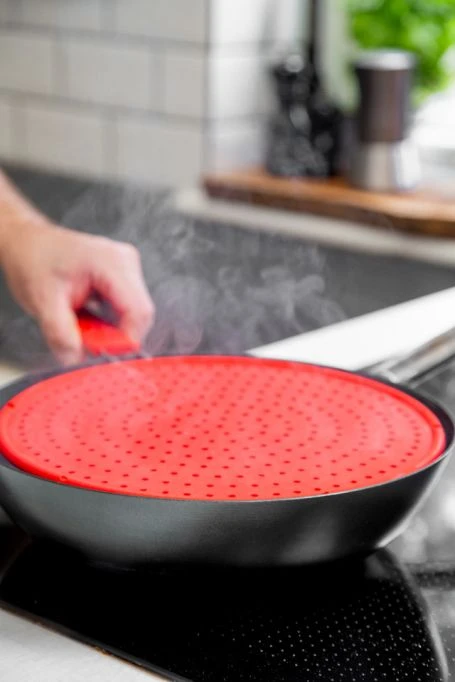 This silicone splatter screen is perforated, so steam escapes safely, without a sudden surge as you uncover the pan. Made from silicone it’s very easy to keep clean. Lots of materials stain and absorb odours with use. Silicone doesn’t. So, you can fry anything from pans of fish, liver and onions to eggs – whether you hand wash it in warm water or pop it in your dishwasher, all the odours and stains wash away.